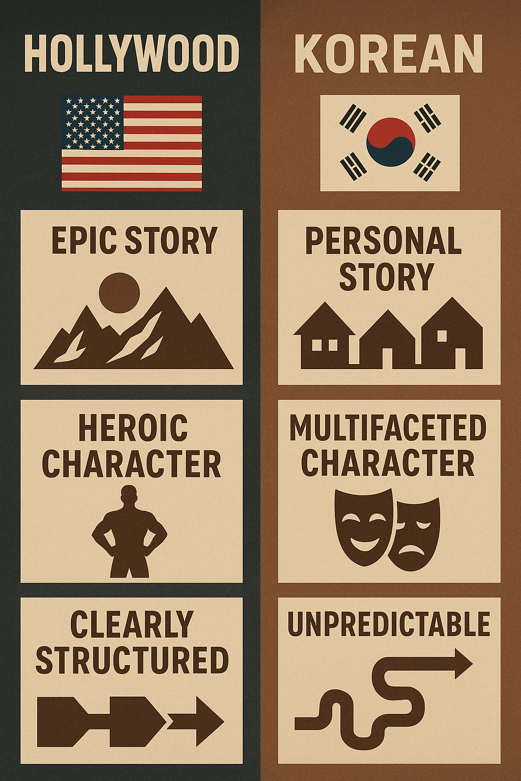 헐리우드 영화와 한국 영화는 세계 영화 시장에서 모두 중요한 위치를 차지하고 있습니다. 하지만 두 영화 산업은 이야기 전개 방식, 캐릭터 설정, 서사 구조에서 뚜렷한 차이를 보입니다. 헐리우드는 대중성을 바탕으로 한 블록버스터적 요소가 강한 반면, 한국 영화는 현실적이고 인간적인 디테일에 집중하는 특징이 있습니다. 이번 글에서는 서사, 캐릭터, 전개라는 세 가지 키워드로 두 영화 스타일을 비교해보겠습니다. 서사 구조 – 헐리우드의 전형성 vs 한국의 현실성헐리우드 영화의 가장 큰 특징은 명확한 기승전결 구조입니다. 고전적인 3막 구조(Setup, Confrontation, Resolution)를 따르며, 관객이 쉽게 이해하고 따라갈 수 있도록 설계됩니다. 특히 마블 시리즈나 DC 유니버스 같은 블록버스터..